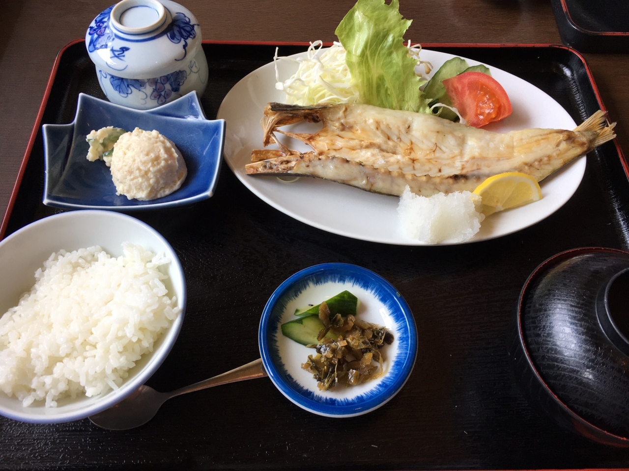 ランチで訪問しました。コロナの影響で刺身定食は中止となっていたため、他のメニューを注文しました。焼き魚は少し塩味が濃いと感じました。定食は全体的にボリュームがあります。支払いは現金のみでクレジットカードは使用できません。駐車場はわりと広いです。