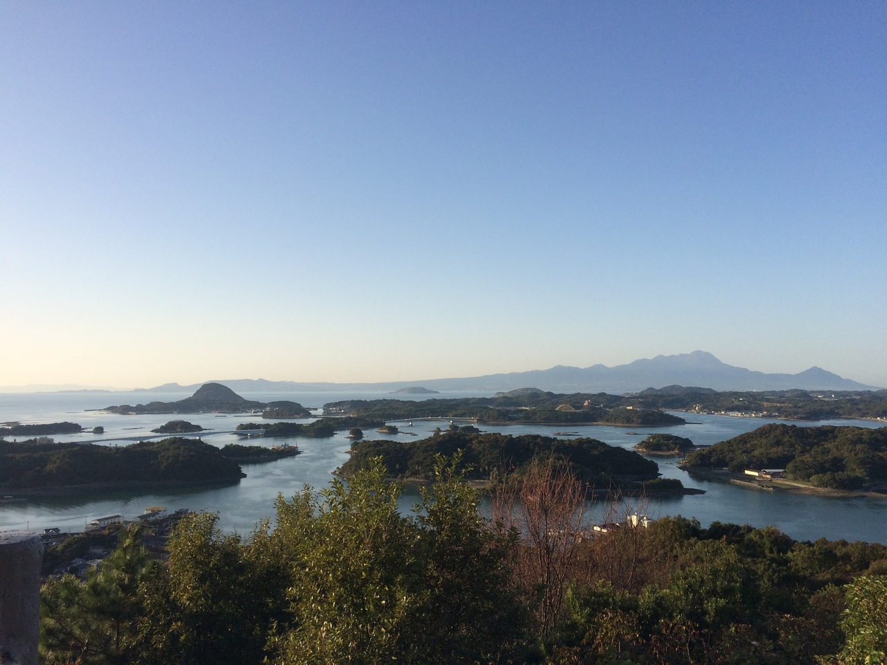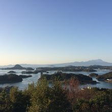 頂上までは徒歩で階段を登ることが必要ですが、標高は117メートルなので、すぐ頂上に到着します。日本の夕陽百選に認定されています。夕日が沈むころの写真がパネルになっておかれていました。松島が見えて開放感がありました。