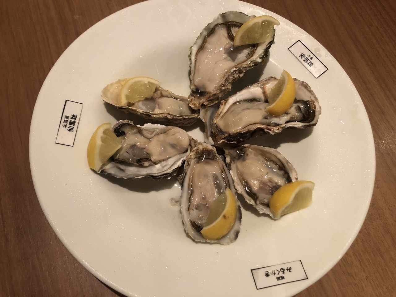 生牡蠣が食べられるシーフードバルです。 生牡蠣はとても美味しかったのですが、東京駅直結のグランルーフということもあり、あまりコスパが良くなかったのが残念です。新幹線に乗る前などはとても便利だと思います。