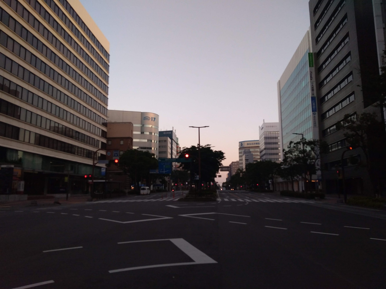 大博通りは、JR博多駅から真っ直ぐに伸びる幅の広い主要大通りで、大規模ビルなどが林立しています。特に観光アトラクションというわけではないですが、整然とした街並みが素晴らしく、周辺の雰囲気も最高でした。