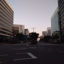 JR博多駅から真っ直ぐに伸びる幅の広い主要大通り