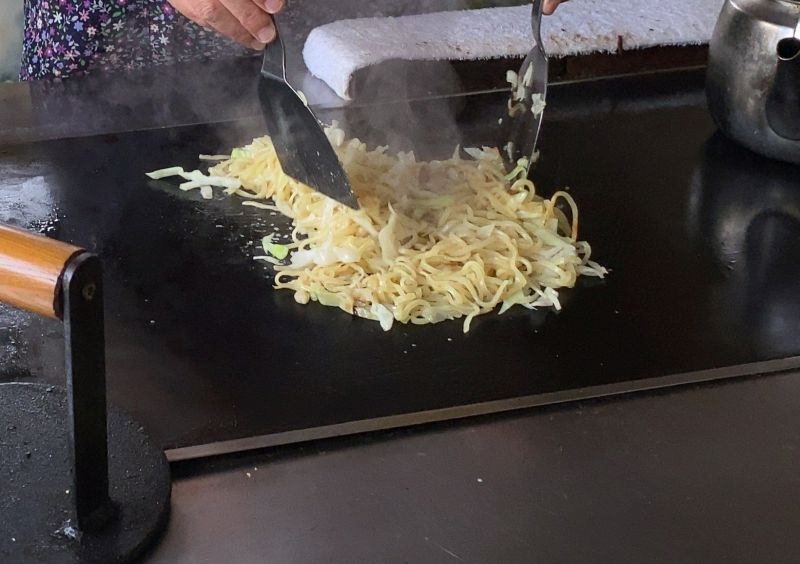 焼きそば450円(税込)サラダ油ではなくラードを使っていました。麺はマルモ製。焼きそばはラードを使っていますが、くどくなくいただけました。