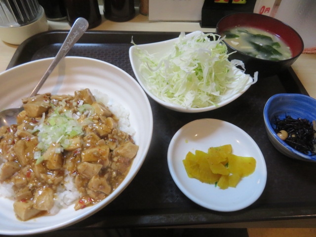 新橋駅烏森口から北に向かっていたらすぐ定食を案内した立て看板があったので行きました、ビルの地下1階にあります、カウンター席のみ10席ほどの小さなお店です、昼は定食、夜は居酒屋です、ビジネスマンに人気の500円の定食がいくつかあります、私はマーボー定食を食べました、普通に食べることが出来ました、マスターが唐揚げ2個サービスしてくれました。