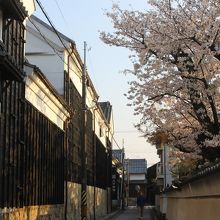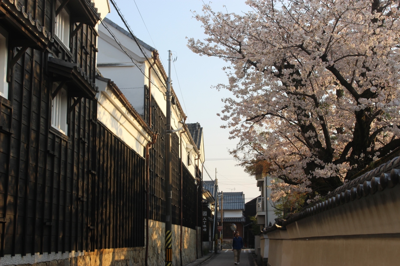 黒塗りの蔵とピンクの満開の桜の組み合わせがとても絵になりました。
