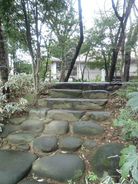 石灯籠や飛び石などの遺構がわずかに残ります
