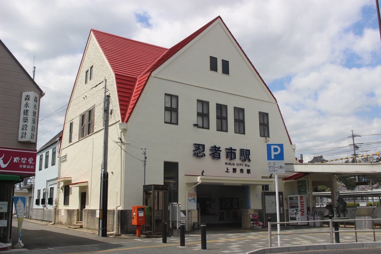 忍者の町、伊賀上野へのローカル線なので、電車には忍者の絵が描かれていたり、中心とする上野市駅には「忍者市」駅とありました。