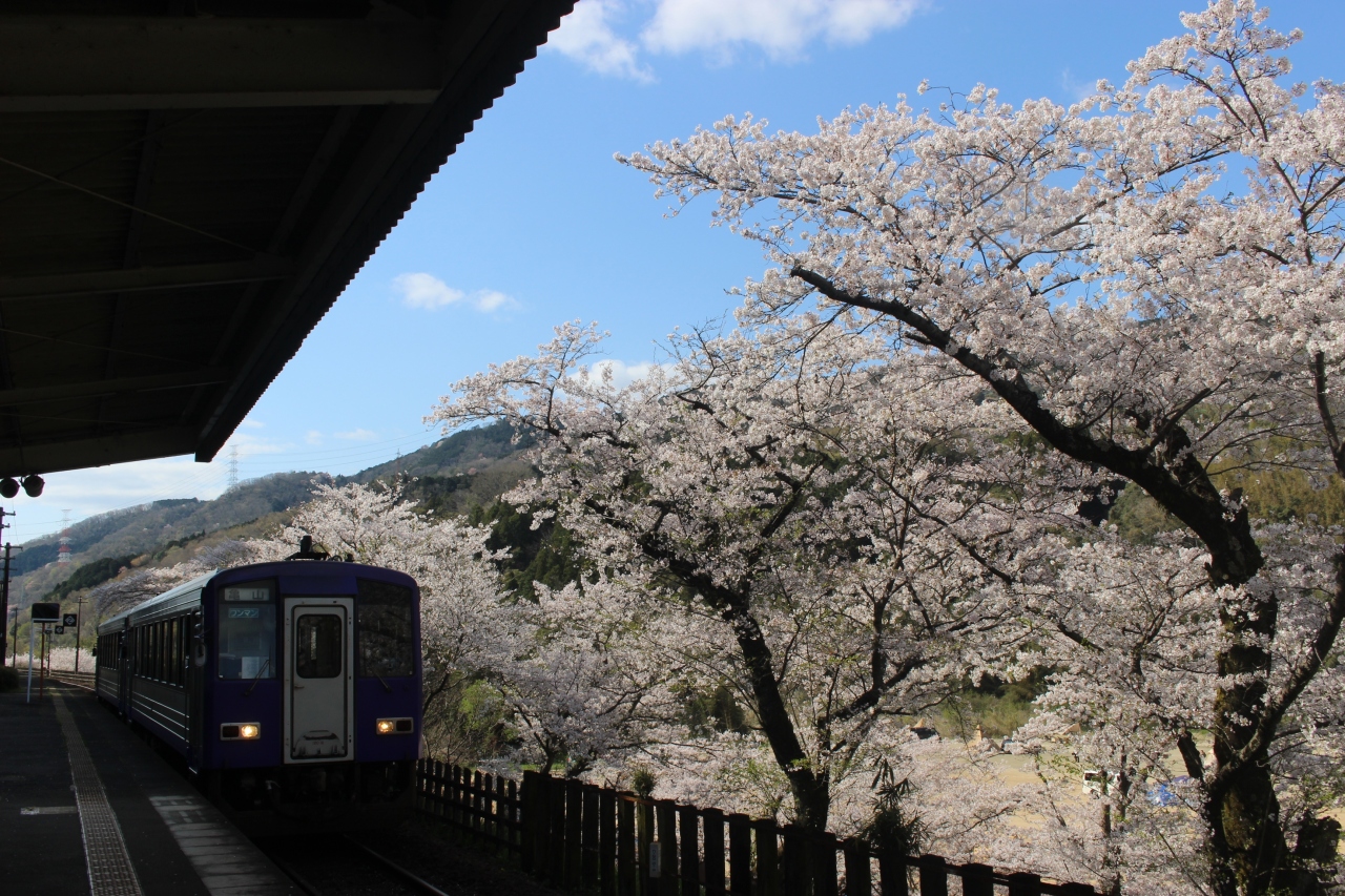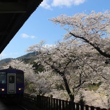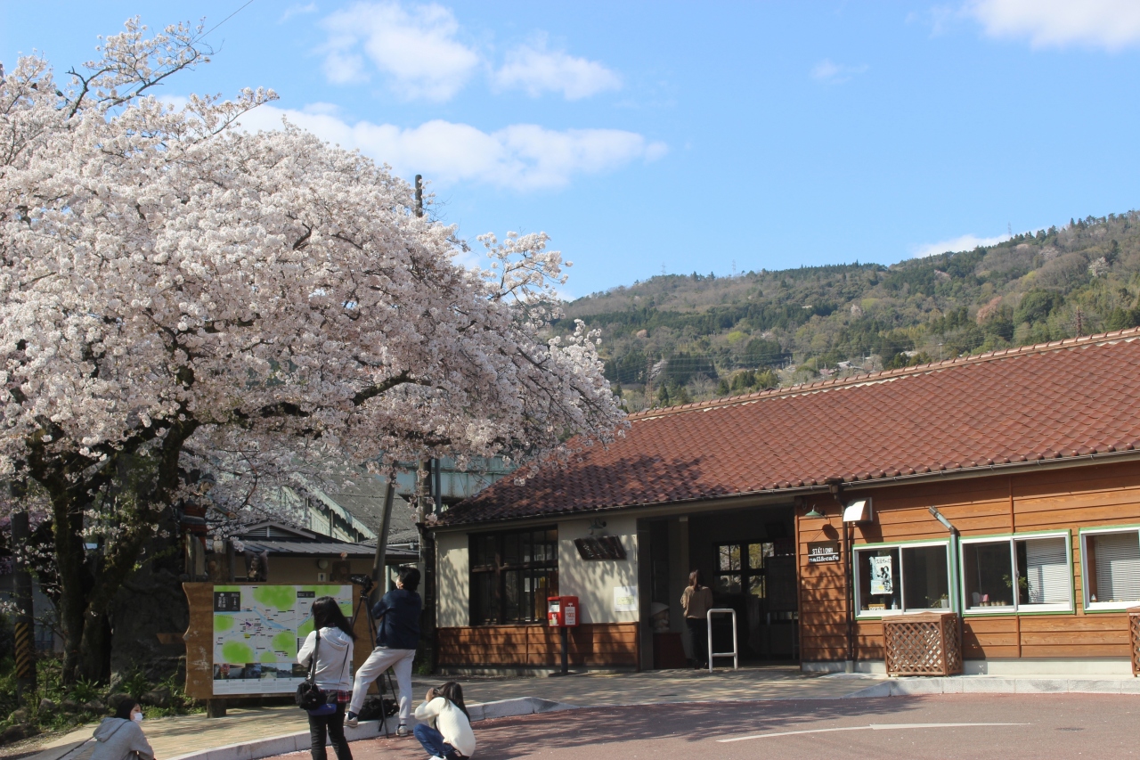 この駅は桜の木で駅が埋まるように満開の桜が華やかに咲いていて、「桜駅」でした。