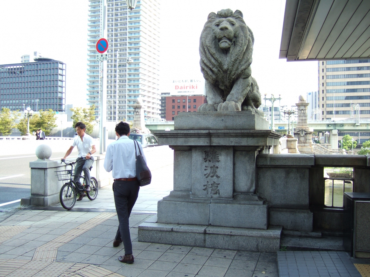 京阪電車と大阪メトロの北浜駅を出てすぐ、土佐堀川にかかる大きな橋です。親柱に大きなライオン像があり、地元ではライオン橋と呼ばれているそうです。