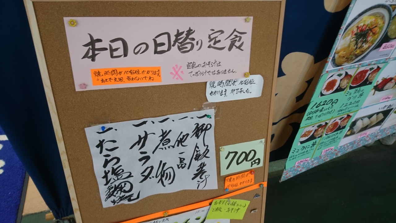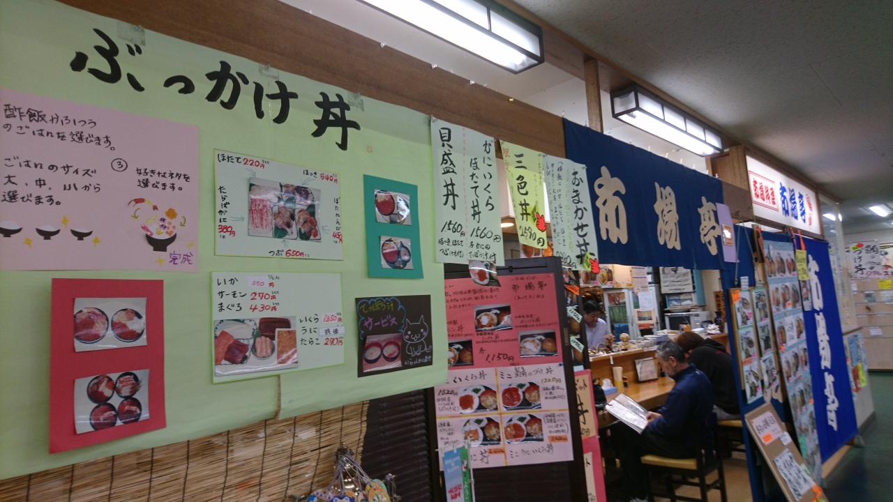 釧路に行くたびに訪れる和商市場さん。そこの中にある食堂です。以前はなかったと思います。和商市場は、ご飯を買って鮮魚店でお刺身を買ってのせる「勝手丼」という観光客をターゲットにしたグルメはあるのですが、ここはきちんと丼を出すお店です。焼き魚の定食もあり、頑張っている食堂です。