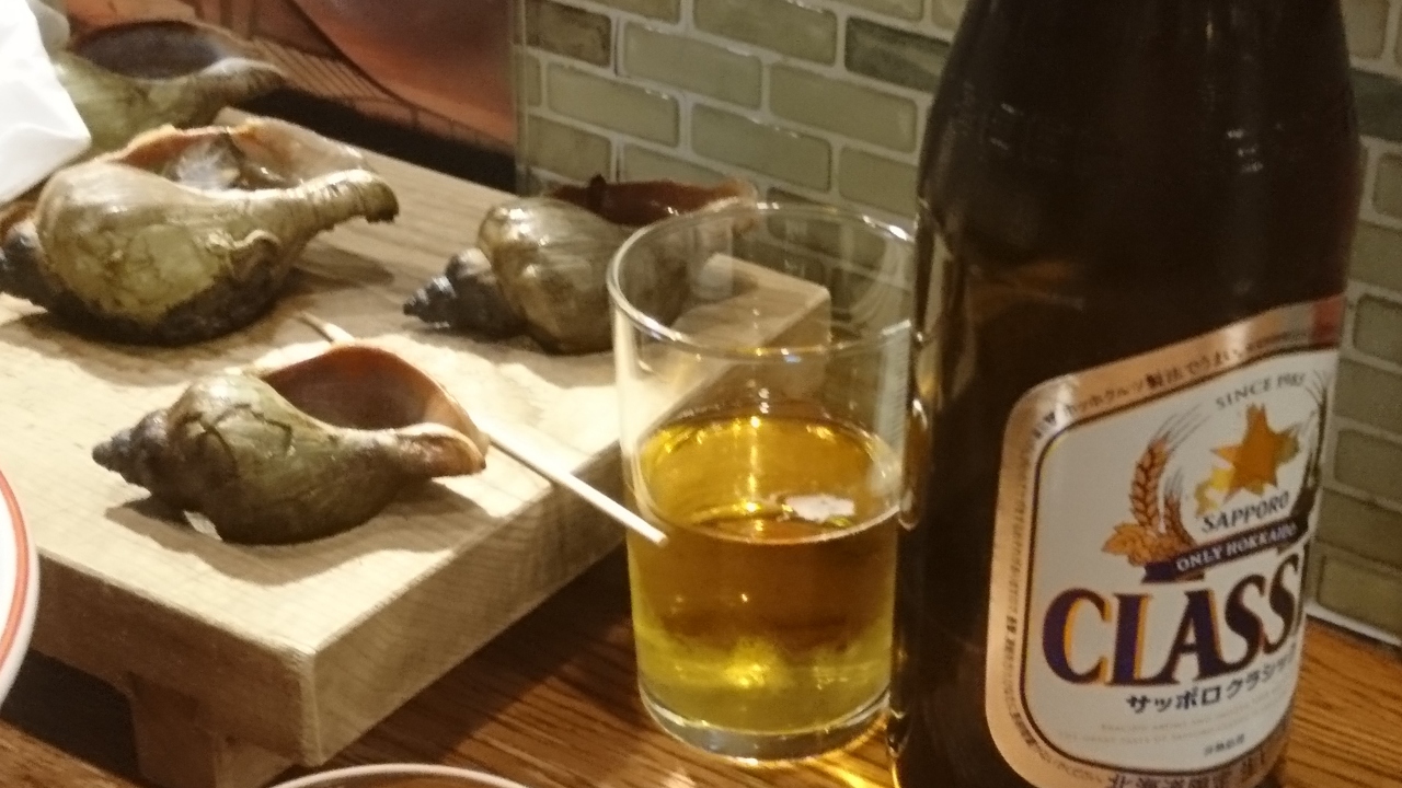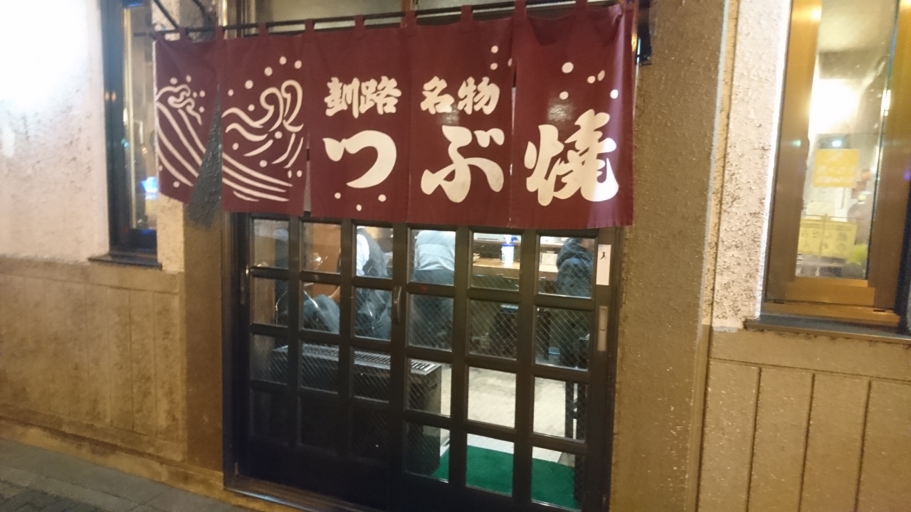 釧路のグルメを満喫し最後の〆は、やはりここかど屋さんです。釧路人なら、ここのツブ焼きとラーメンで〆るのが習わしです。ツブだけならいいのですが、ラーメンとなるとカロリーを気にするのですが、旅に出ると、その土地の人の習わしに従うのが礼儀ですよね、と遅い時間にラーメンを食べることを正当化していざ、出陣です。ツブはおいしい。このタレが絶妙です。お店の人も心得ていて、「ラーメンはすぐ、できるのでさいしょにツブをどうぞ」と言ってくれます。ラーメンは、真っ黒いスープですが、魚介系の出汁のあっさりしたスープで飲んだ後には最高です。