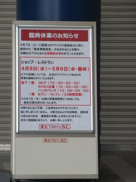 横浜市営地下鉄のセンター南駅にあるショッピングセンターです。いつもはたくさんのお客さんでにぎわっているのですが、今回はウィルスの関係で一部のお店しか開いていないこともあって、静かでした。地下のスーパー(レジはちょっと並んだ)や薬局(マスクはなかった)、1階のカルディ(試飲は中止)やセブンなど、生活に必要なお店のみの営業でしたが、とりあえず必要なものはそろって助かりました。