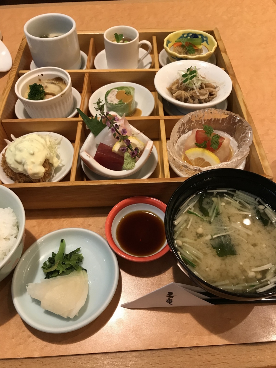 鹿児島バスターミナルのレストランフロアーにある、寿庵さんです。昼間はランチメニューを提供していますが、鹿児島中央駅からもすぐ近くなのに、意外にも空いていてゆっくりご飯がいただけます。プラス300円でデザートとコーヒー付きにできます。
