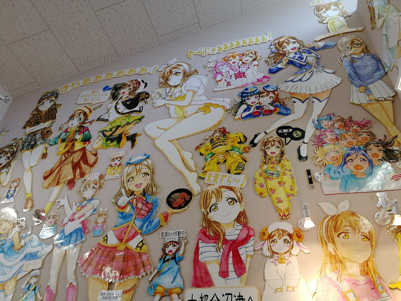 店内はラブライブのキャラクターの装飾が可愛いと感じます。