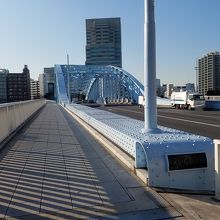 門前仲町駅と茅場町駅の真ん中あたりで隅田川に架かる橋で永代通りを通しています。現在の橋は1926年に造られたものでアーチ橋の支点部同士を結んだタイドアーチという構造で、現存最古のタイドアーチ橋ということで重要文化財なのですね。隅田川に架かる橋は美しいものが多いですが橋の構造なども頭に入れながら全体像を眺めると面白みが増しますね。
