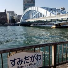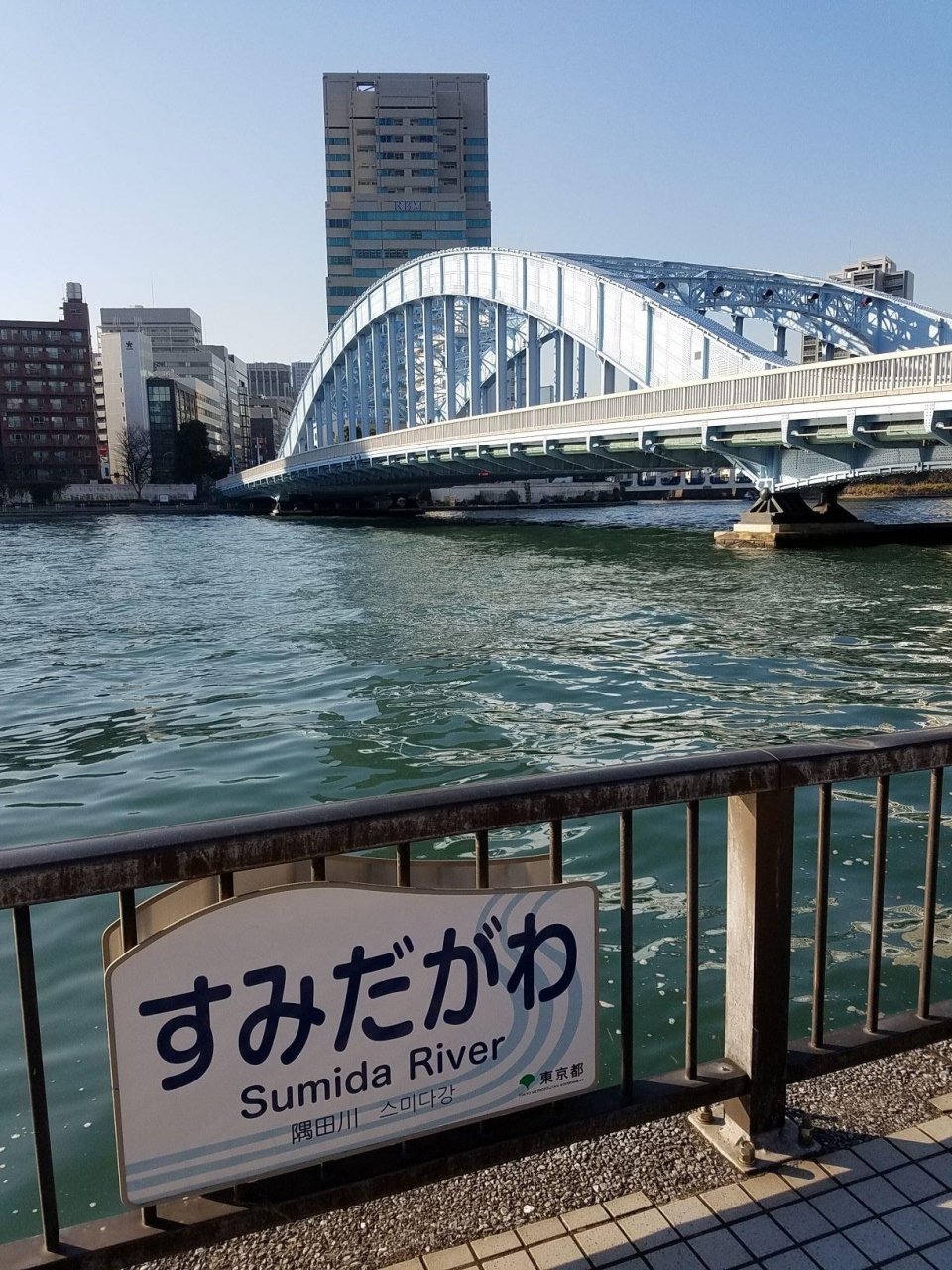 門前仲町駅から永代通りを茅場町駅方面に歩くと永代橋でこの川を渡ります。川べりから美しい橋を眺めていると水面がなみなみとしていて橋桁に近いです。そこを何隻もの船がぎりぎり通っていくのが見えて冷や冷やしました。ヒミコとかの平べったいクルーズ船のデザインはこういう意味があるのだなと納得しました。