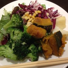 ヘルシーな食事がしたかったので、ネットでサラダバーのあるお店を調べ、こちらへ訪れました。サラダバーだけだと約900円、パスタなどのメインを付けるとプラス300円くらいでした。メインを付けると残してしまいそうだったので、サラダバーのみ注文しました。でも、種類を見てみると、4、5種類くらいしかなくて、寂しい食事になってしまいました。メインを付けないとダメなんだなと感じました。