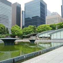 向こう側に見えるアーチ型の屋根の建物はパレスホテル直営のレストランになっていて、美しい噴水を楽しみながらランチやディナーを頂くことができます。(ちょっと高いのが残念ですが。)