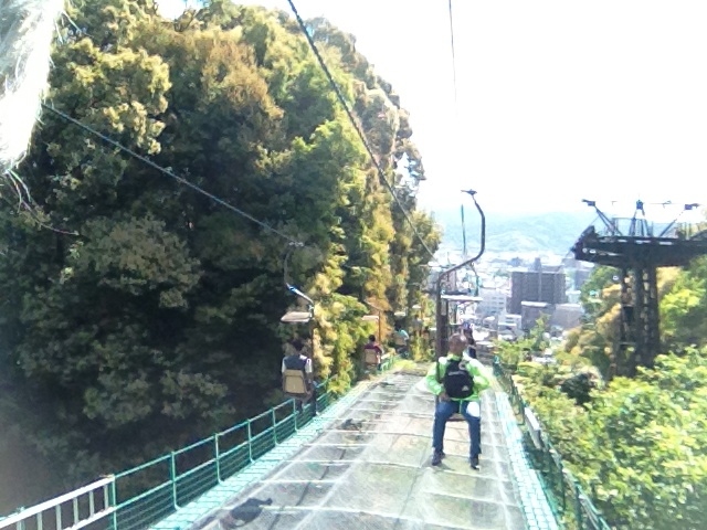 道後温泉ほど有名じゃないけど、れっきとした伊予国随一の城下町である松山のお城は小高い丘の上にあって、市電に乗ってるとあまり気付かないのだが、ちゃんとあります。リフトで天守閣のあるところまで登っていくと、マスコットキャラクターのよしあきくんが待っていてくれました。