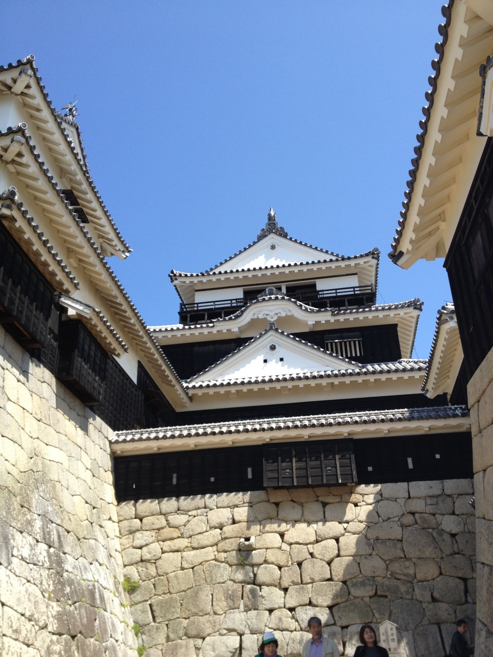 リフトで一気に登ると、ヒコニャンならぬよしあきくんというマスコットキャラクターに人が群れ集まっていました。すぐ後ろに見える天守閣は黒塀と白壁のコントラストも鮮やかに優しい姿が春の日差しに映えていました。