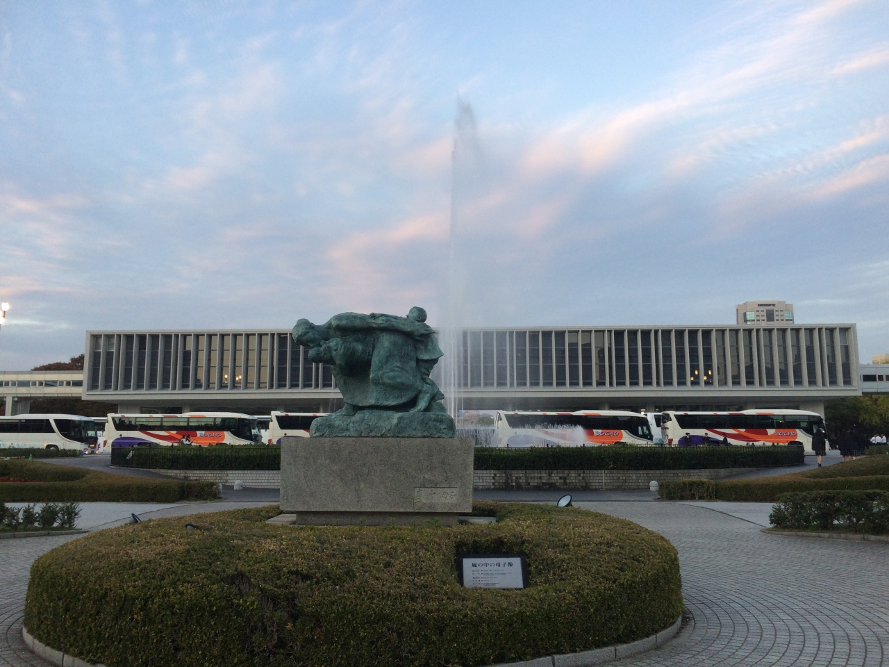 平和記念公園内の有料展示品のところの原爆の被害の写真や遺品はなかなか残酷でしたが、日本人は昔の過ちを繰り返さないように一度足を運ぶことを強くお勧めします。夜になるとライトアップがなされます。原爆ドームと隣接しています。
