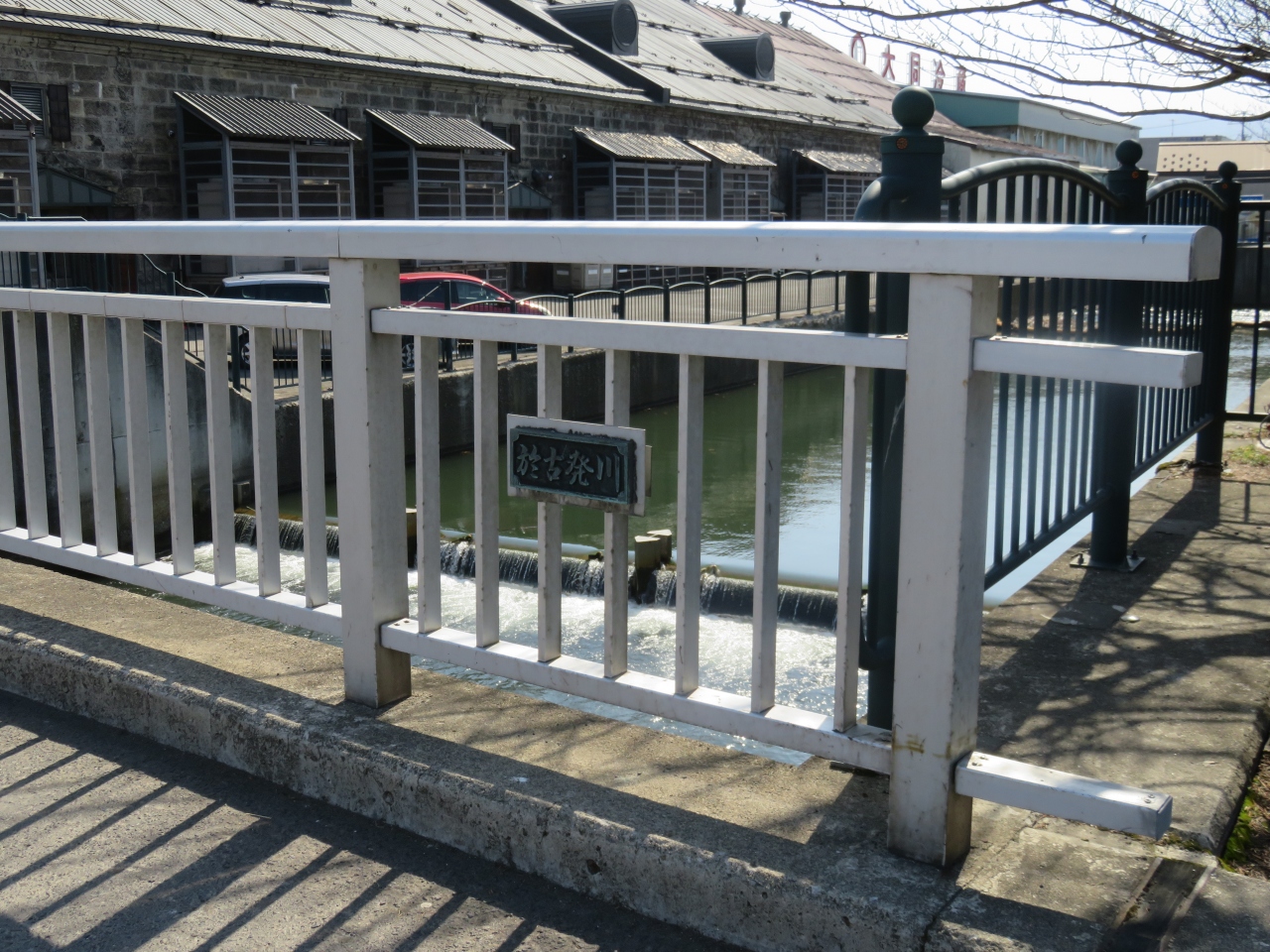 小樽運河の北の端は浅草橋。その先は川になっていて難しい名前の於古発川(おこばちがわと読む)になり、結構な流量が運河に注いでいました。ただ特に運河の際あたりはゴミが多く残念でした。反対側に振り返ると、そこは小樽運河です。