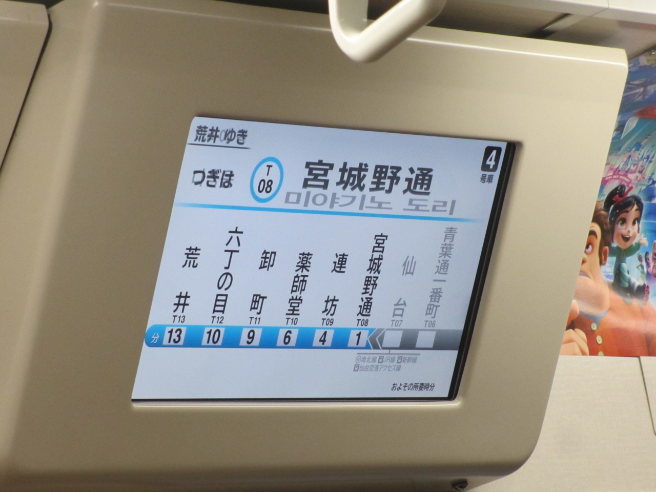 英語・中国語・韓国語の案内がモニターに映った。