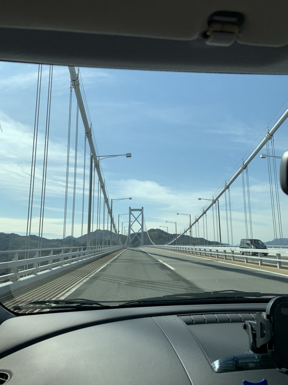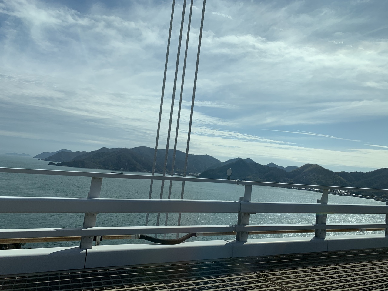 向島から因島へ移動する際にこちらの橋を利用しました。こちらの橋は二重構造になっていて上は自動車が走り、下は自転車と歩行者が通れるようになっているそうです。いつか機会があれば自転車でも走ってみたいと思いました。