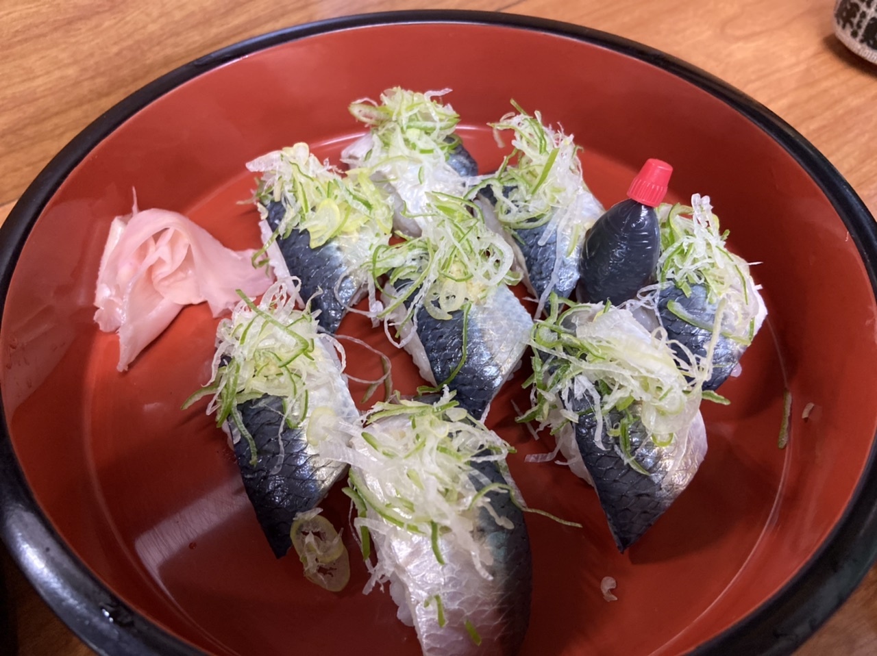 名物いわし寿司、特上寿司、赤だしなどを注文。