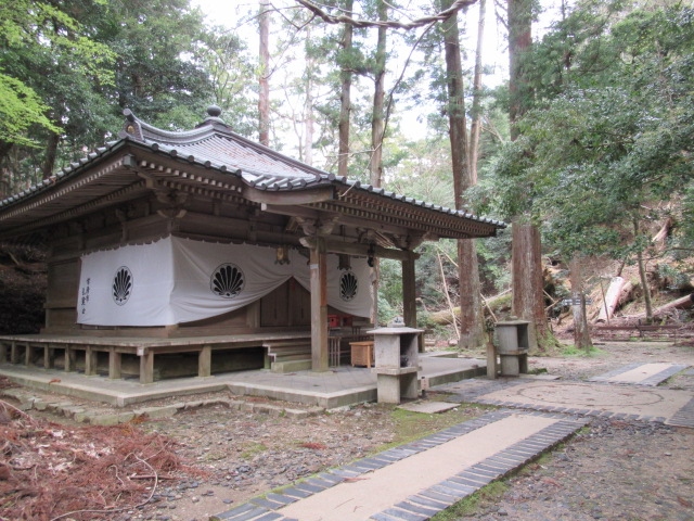 鞍馬寺から奥の院へ山越えする奥の院参道はずぅーと険しい坂道になります山頂にある「背比べ石」越え、ながーい下り坂や石段もありますので注意してくださいね。するとこの「不動堂」が見えてきます。天台宗の開祖である最澄が鞍馬山で修行していた時に彫ったと伝えられる不動明王が安置されているとのことです。今回見ることはできませんでしたが不動堂前の幾何学模様の床石でパワーをいただきました。この付近僧正ヶ谷に天狗が住んでいたと言われ義経は毎晩ここに通い天狗と修行したとされています。義経伝説の原点ともいえる場所で義経への思いが深くなりますね。