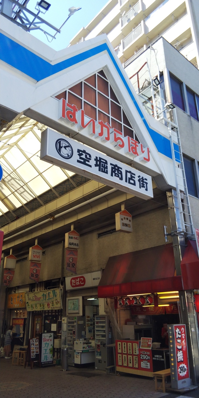 空堀と書いて、からほり商店街と読みます。アーケードのある商店街で、個人経営のお店やレストランが多かった気がします。コロナによる緊急事態宣言も解除されていたので、平日昼間でもぼちぼちヒトが多かったです。大阪メトロの谷町六丁目駅から近かったです。