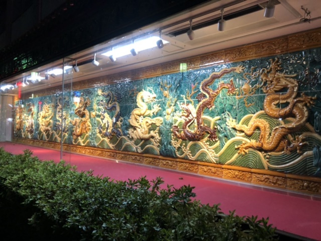 夜の19時ころ来ましたが、中華街は人が少なくてガラガラ、はじめての光景でした。この豪華なディスプレイーは中華街の西門から入って、中学校の隣の昔からある駐車場の一階にあり大変ありがたい感じです。