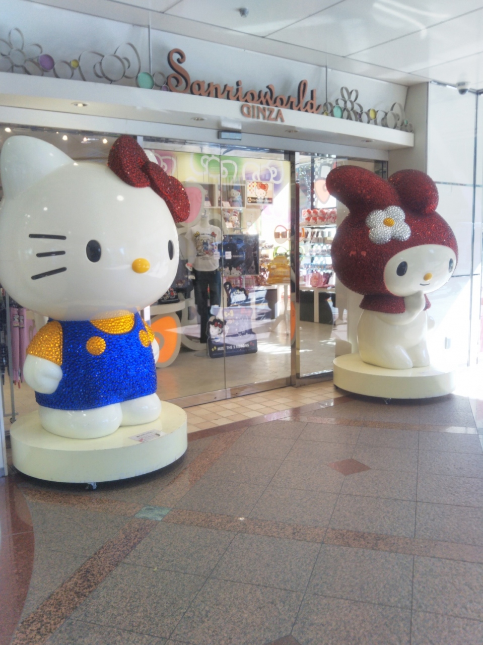 銀座の西銀座デパートの1F入り口にある「サンリオワールド ギンザ」の店頭には、世界的に有名となったハローキティのオブジェがとても目を惹きます。