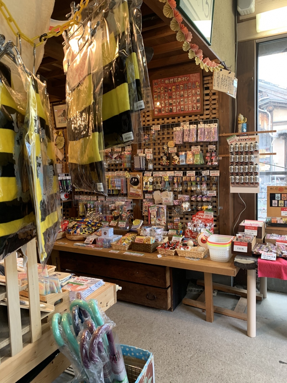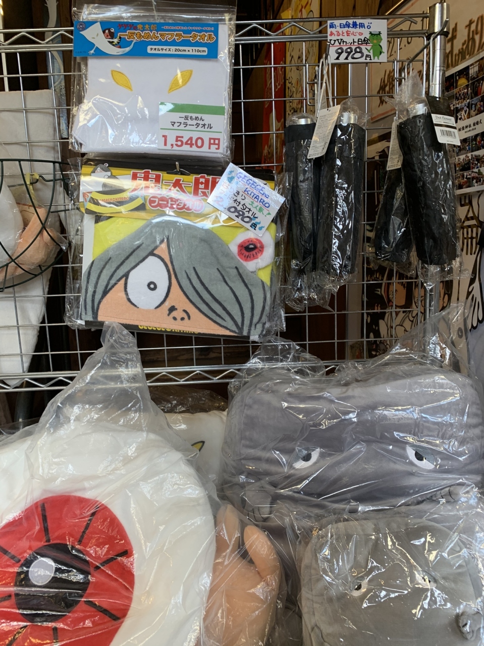 妖怪神社の隣にある鬼太郎グッズのお店です。妖怪神社を見た後に立ち寄りました。一反木綿のマフラータオルが可愛くて気に入ったので自分用に購入。洗面所の手拭きタオルにちょうどよい長さで、シンプルですがかわいいです。