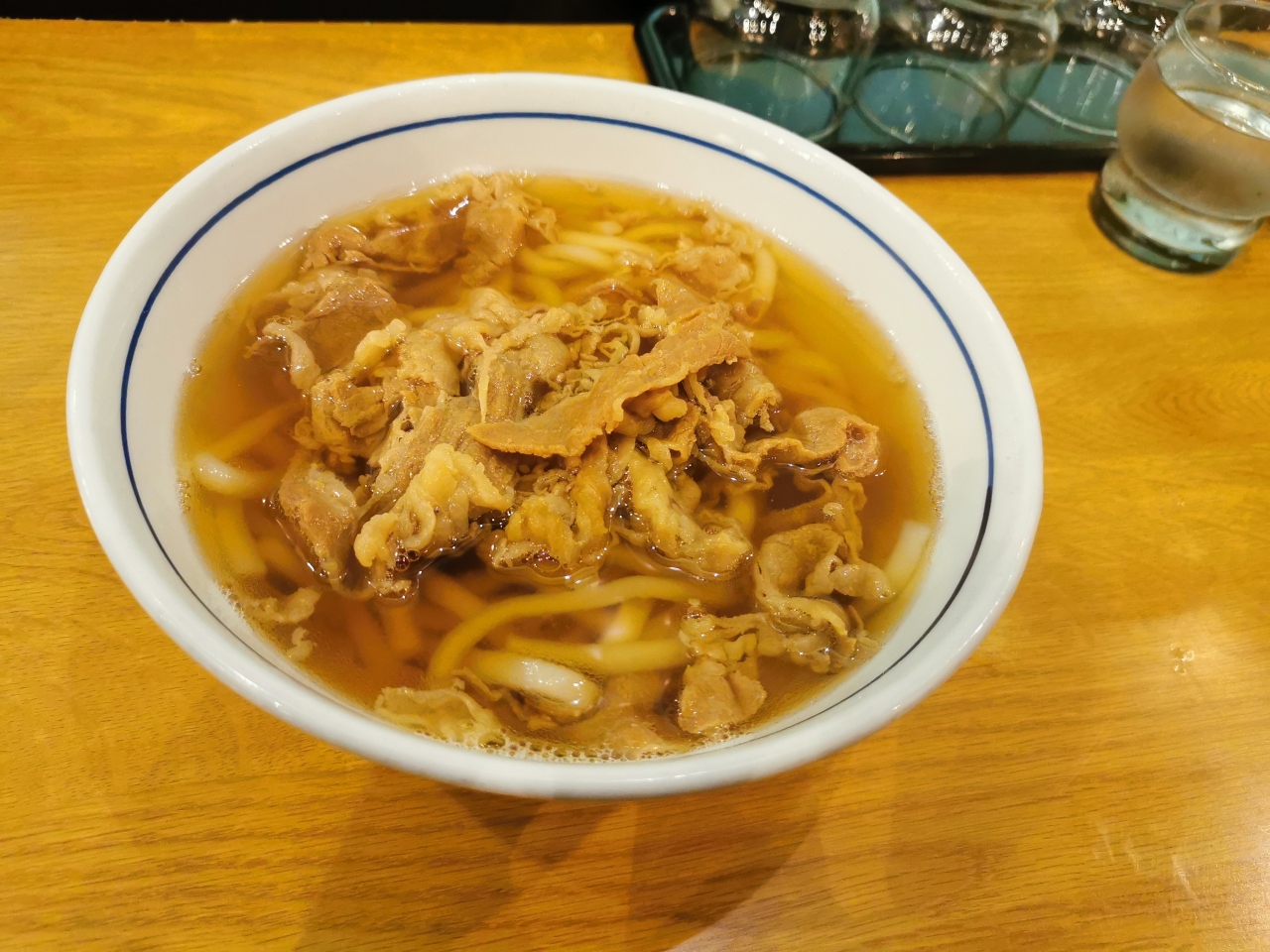 社用での福岡。会食終了後に小腹がすいたので、ホテルの最寄り駅から近い「ウエスト 渡辺通り店」で食事をしました。福岡といえば「うどん」です。注文は肉うどん。出汁が旨い。牛肉が甘くて旨い。飲んだ後に食べるうどんは最高です。店内はカウンター席もあるのでお一人様でも大丈夫。