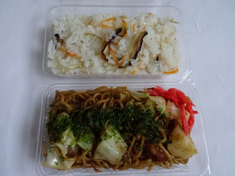 弁当を扱っているというので伺いましたが、行ったときはありませんでした。惣菜と五目ちらし、やきそばがあるだけでした。あとは野菜が少しありました。