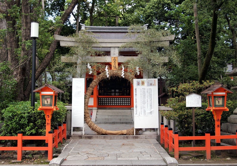 その名の通り、疫病から人々を守る疫病よけの神社で、コロナウィルス感染拡大の中、まさに今の時代にふさわしい神社です。鳥居の下にある茅輪をくぐり抜けることで、疫病除けが出来るとのことです。本殿の横の境内にも同じ大きな茅輪があります。
