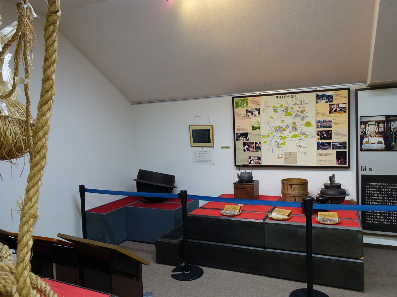 万葉文化館と同じ敷地内に明日香民族資料館がありました。入館料は無料でした。それほど広いスペースではありませんが、2階には展示室がありました。農具や民具か展示されていて、当時の生活の一端を知ることができます。訪問客も私たちだけでゆっくり見学できました。