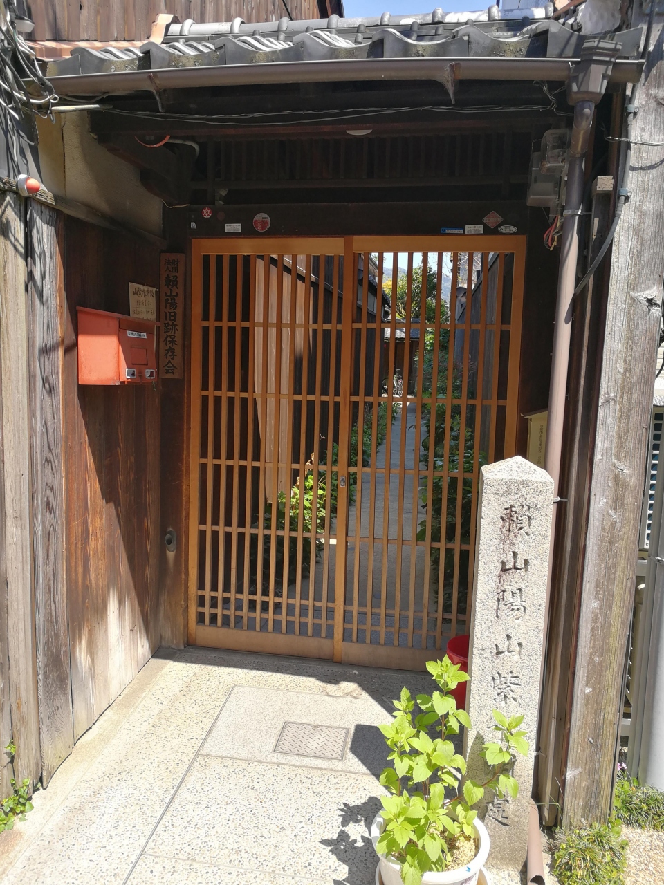 御所周辺に用事があったため、立ち寄りましたが、中に入るためには予約(有料)が必要とのことでした。入り口にはちゃんと石碑もあるものの、住宅地の細い路地にあって、間口も狭いので見つけにくいかもしれませんが、敷地内には茶室などもあるそうで広そうでした。