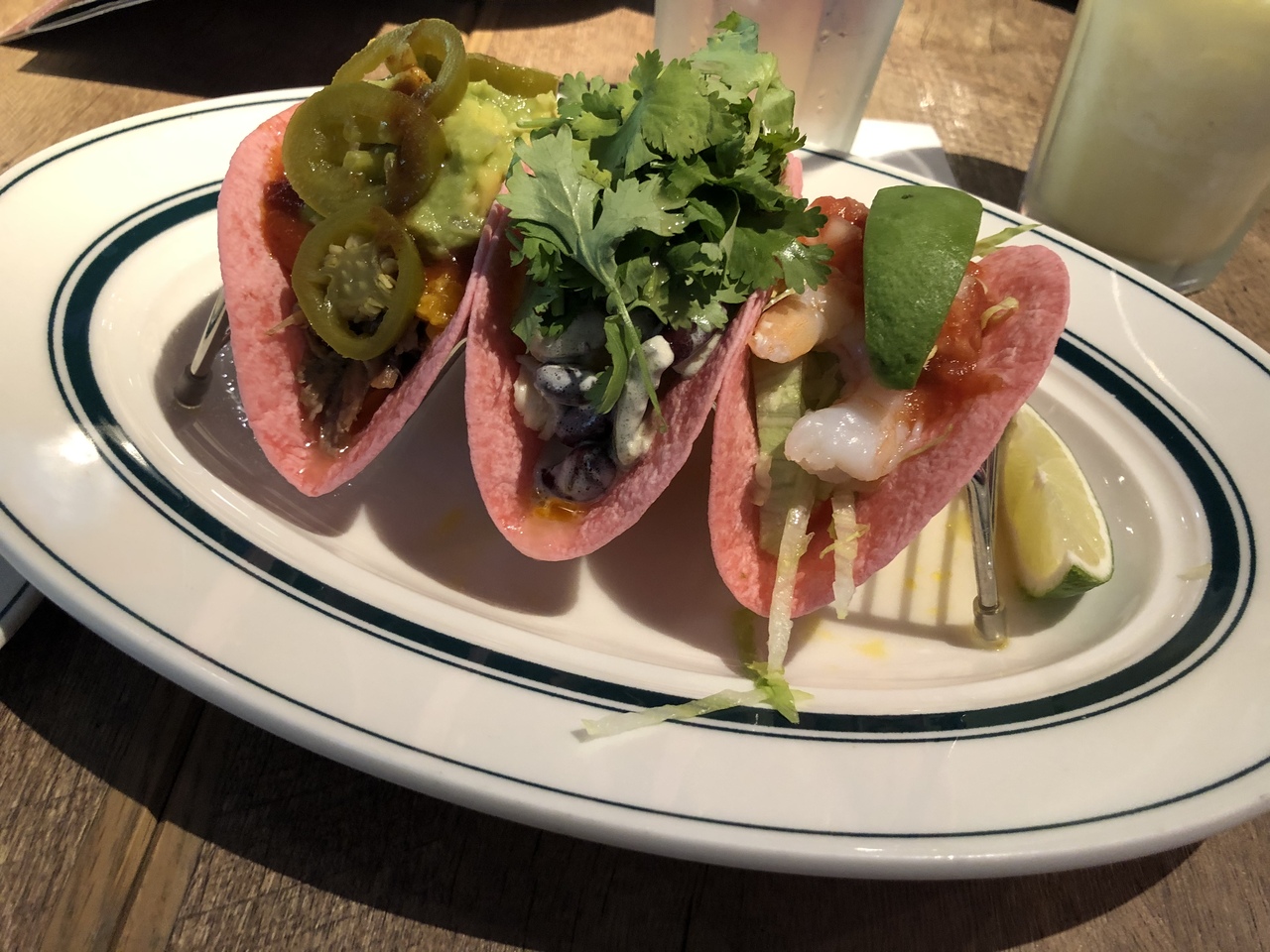 ワカモレとタコス、飲み物を頼みました。