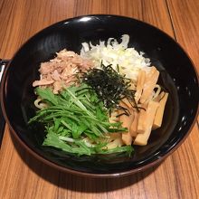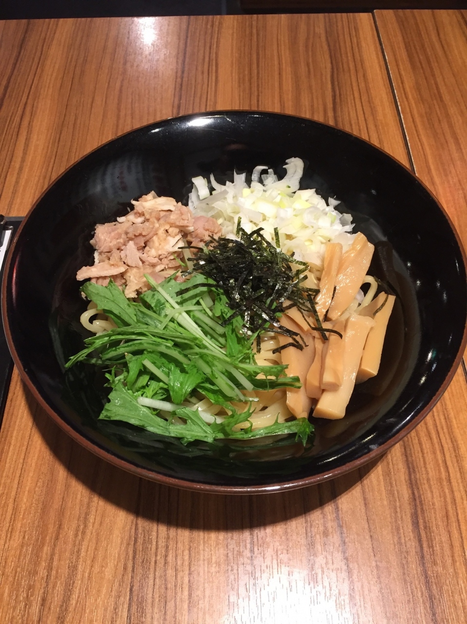 油そばは、大盛りも料金変更なしだったので注文。水菜?のシャキシャキ感は良かったけど、これが大盛り?って感じです。もうちょっと量は期待してた。。トッピングの玉ねぎをふんだんに入れたら、なんだか腹の調子が悪くなってきた。途中からラー油で味変をするとベター。