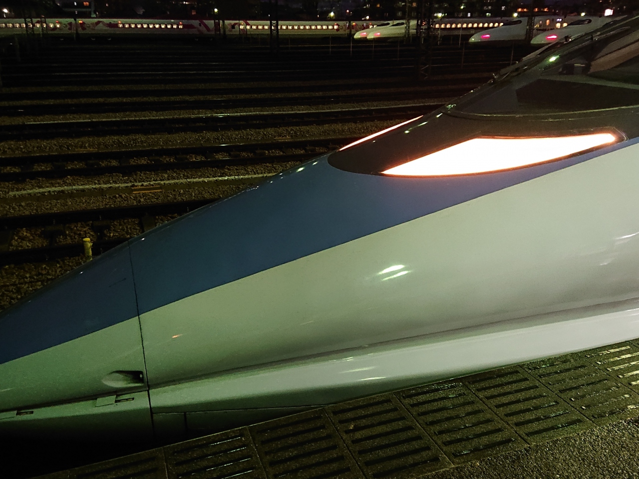 博多南駅には車庫が併設されているので、多くの止まっている車両が見えます。