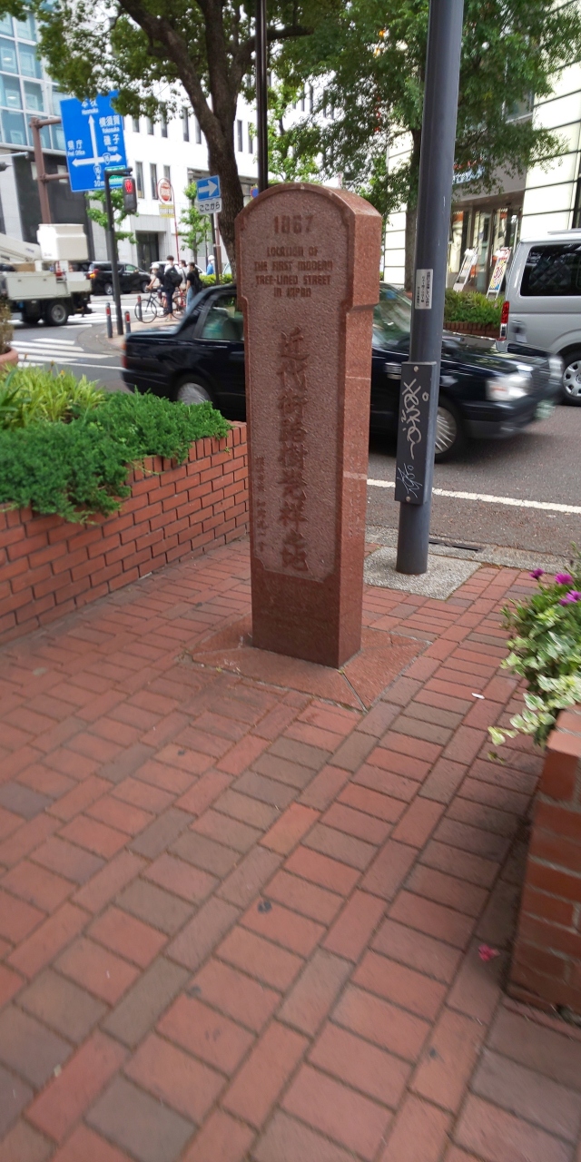 ただ、このあたりの街並みはこの石碑どおり街路樹がたくさんあってレトロな明治大正の西洋文化を感じる街並みがみられました。馬車道の並木道がすっとまっすぐのびてきれいなので、ついでに石碑もチラ見してほしいですね!