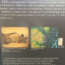 徳川将軍が参拝のため通る道で、江戸時代には門があったようですが、今は何処にでもあるような道でした。車道と歩道の間には木が立ち並び良い雰囲気でしたが、何故だか清掃車がやたら止まっていました。説明の看板もありました。