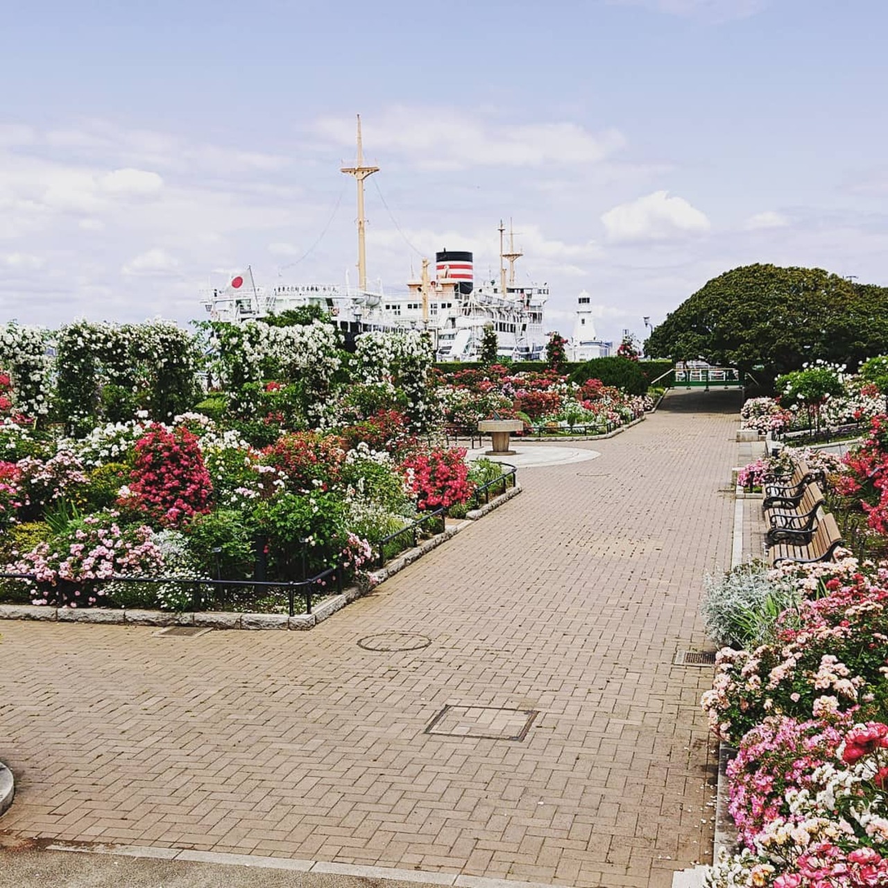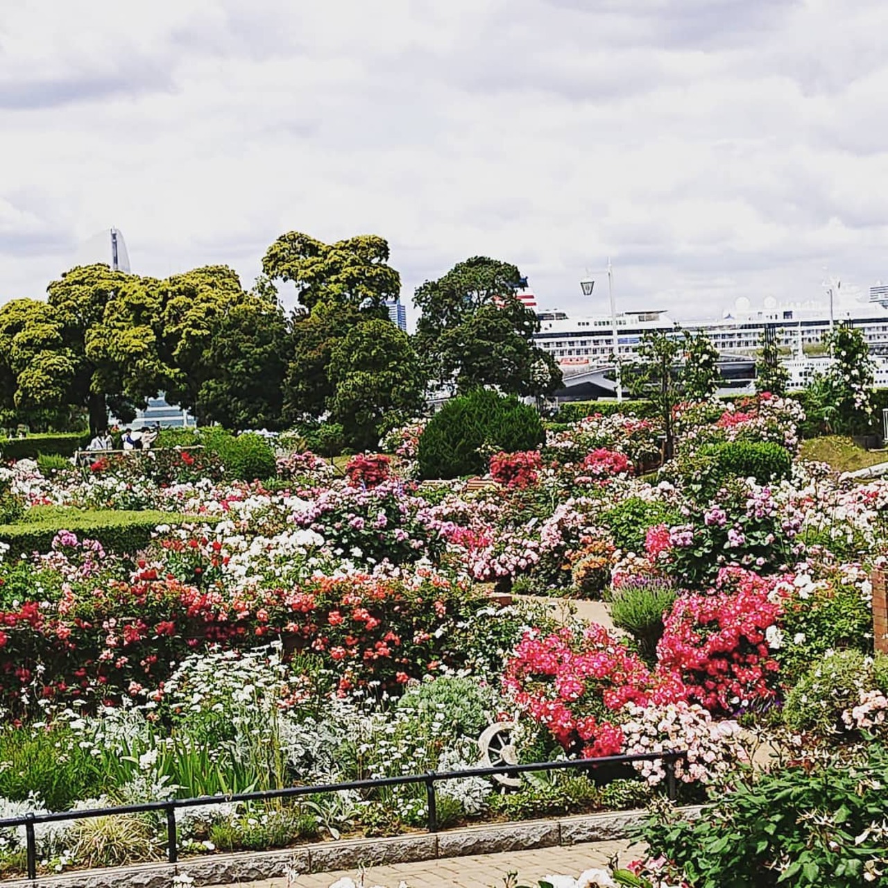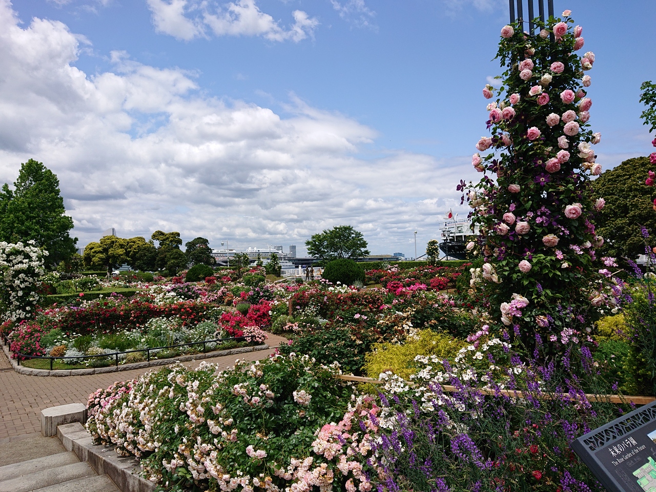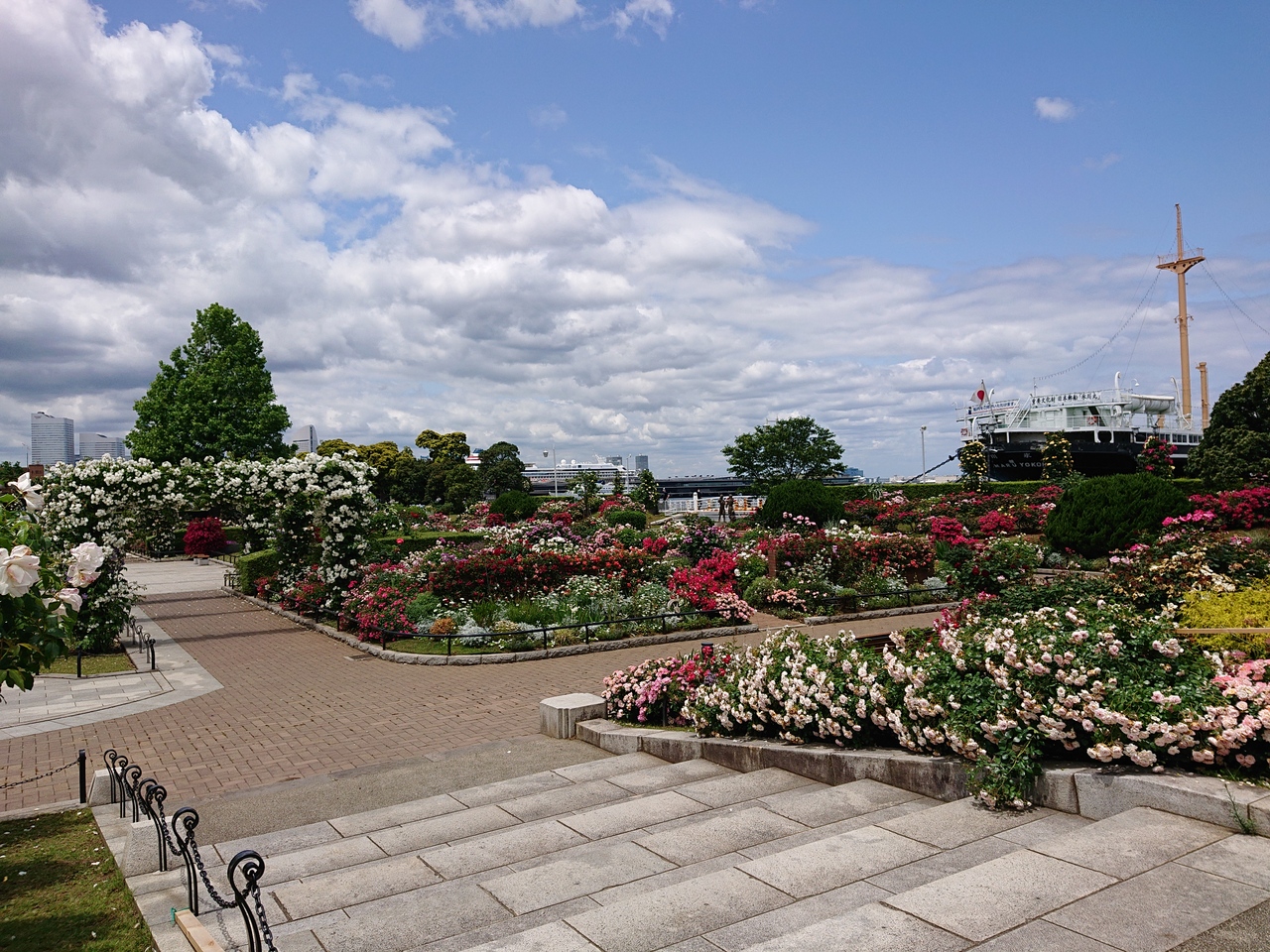 毎年5月中旬あたりには、横浜山下公園の沈床花壇周辺や港の見える丘公園のローズガーデン、沈床花壇は薔薇が咲き乱れます。
