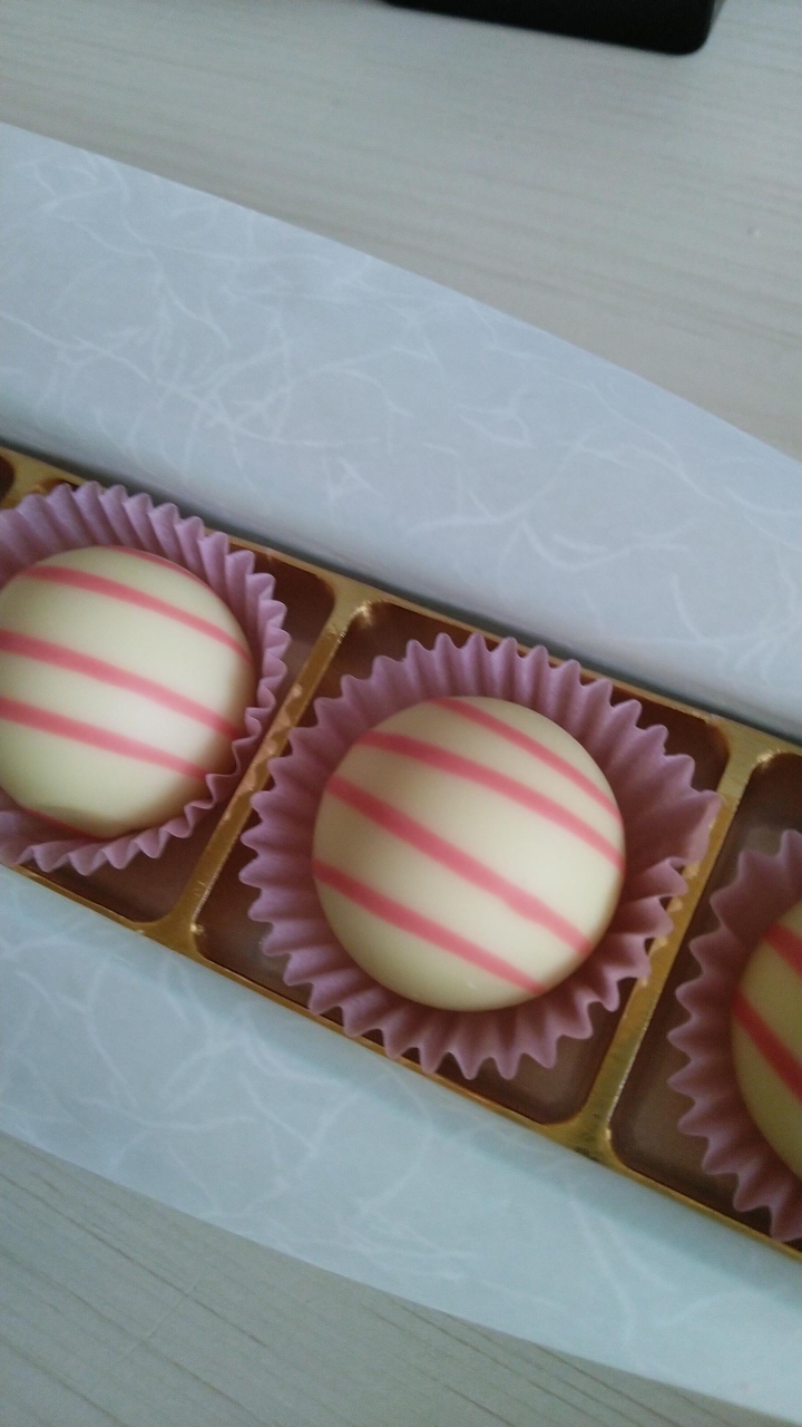 ホワイトチョコにイチゴのガナッシュが入っていました。