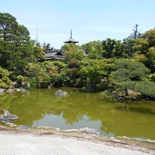 仁和寺の二王門をくぐってすぐ左側に御殿入り口があります。こちらは有料ゾーンです。大人普通で500円です。くつをぬいで玄関に入り順路に沿って歩くとすくに南庭があります。白川砂が敷き詰められて、とてもすがすがしい気もちになりました。さらに奥に進むと北庭があります・こちらは池があり風流です。季節によっていろんな見え方がするんだろうなと思いました。