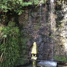 山中座広場から山のほうへ階段をのぼっていくとお寺が見えてきます。境内には小さいながら滝があったり、ベンチがあったり、とてもきれいに整備されています。赤を基調としたお堂は新しいもののようですが、堂々とした立派なものでした。