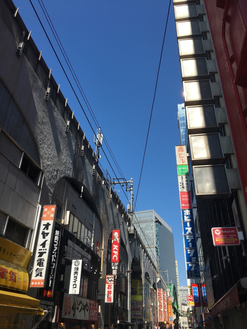 大通り沿いには大きなビルが建ち並び総合電気店が多かったです。歩いているといくつも枝道があり、そこにも電気屋がたくさんありました。路地裏はどちらかと言うと専門店が多かったです。電気屋のほかに食べ物屋もたくさんあります