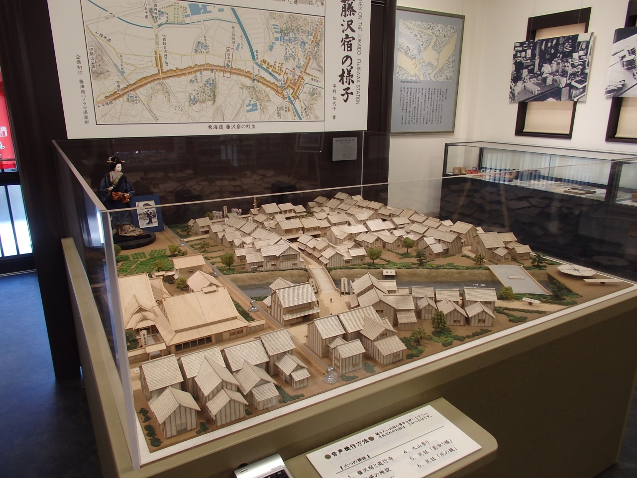 藤沢駅より藤沢宿・遊行寺コースを歩いて50分弱の所に藤沢宿交流館はあります。東海道五十三次や藤沢宿に関する資料、ジオラマの展示、休憩所、イベント開催等に使用されています。交流館の建物は新しいのですが、傍に高札が建っているせいか、古い時代の建てもののように思えます。 散策する前に情報をここで仕入れておくと、その後の散策に大いに役立つと思います