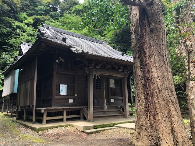 地図で見ると鎖大師と隣り合わせですが、直接行き来することはできず、バス通りを大きく迂回して、歩いて5分ほどかかります。手広の鎮守様(手広は、この神社がある地名)と呼ばれています。鳥居をくぐると、拝殿に向かって階段が伸びており、階段の上の広場には、拝殿や手水舎があります。